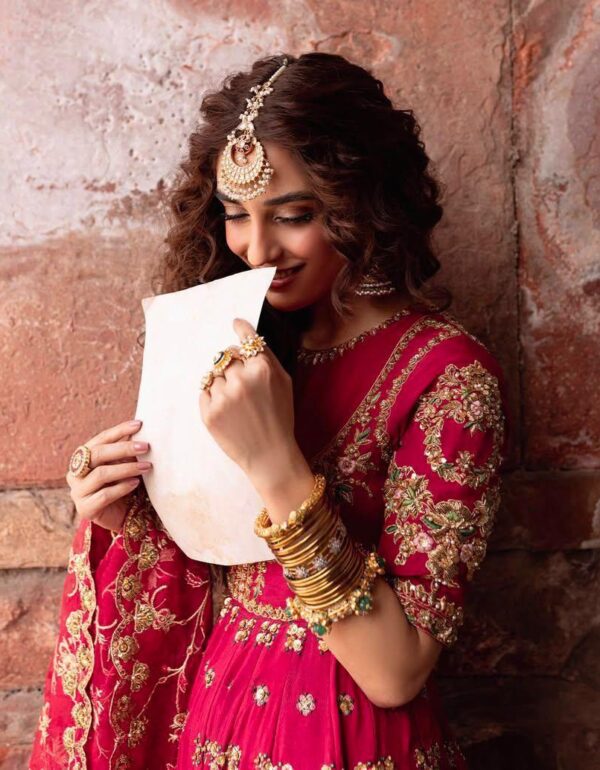 - Dupatta: Heavy georgette with sequins & zari embroidery work, finished with cut work lace on borders