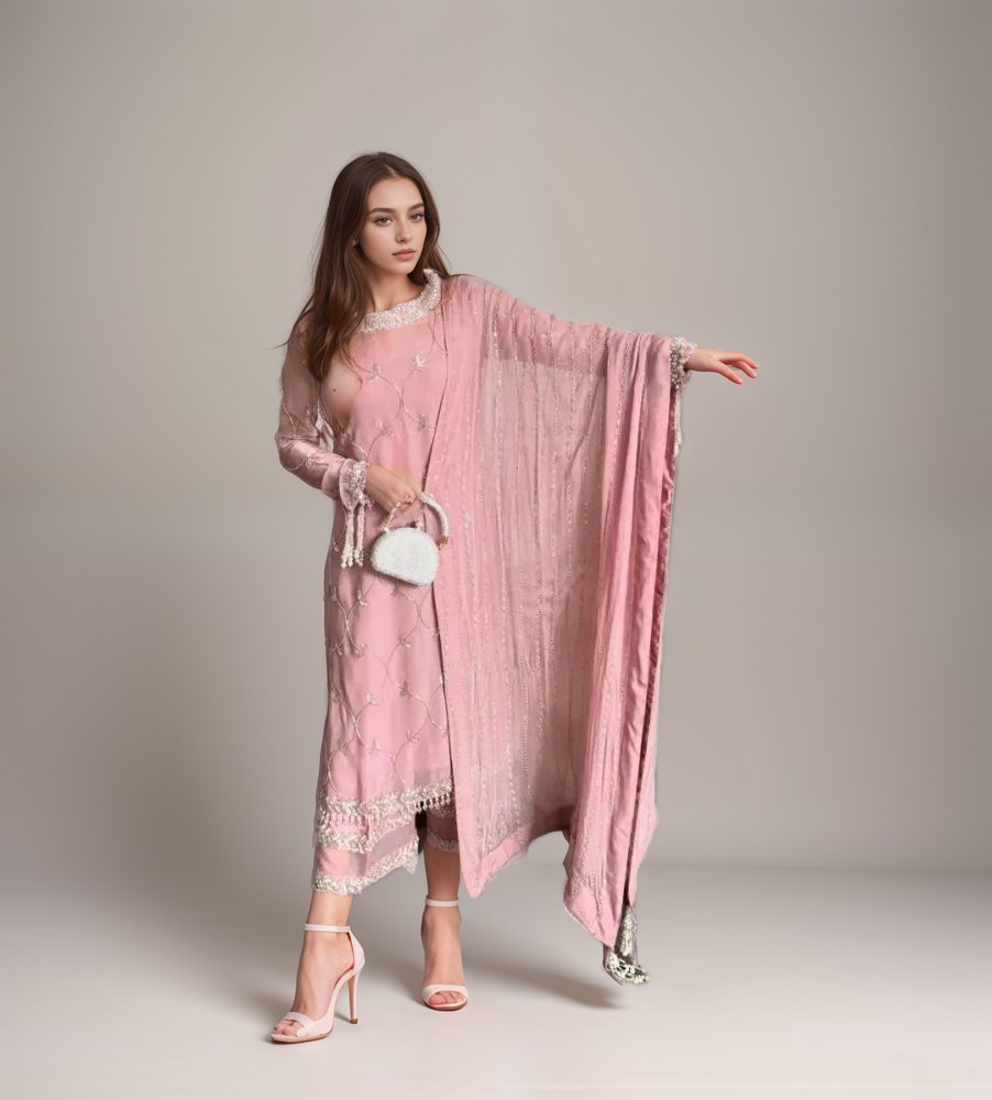Rosé Luxe Embroidered Festive Anarkali Gown