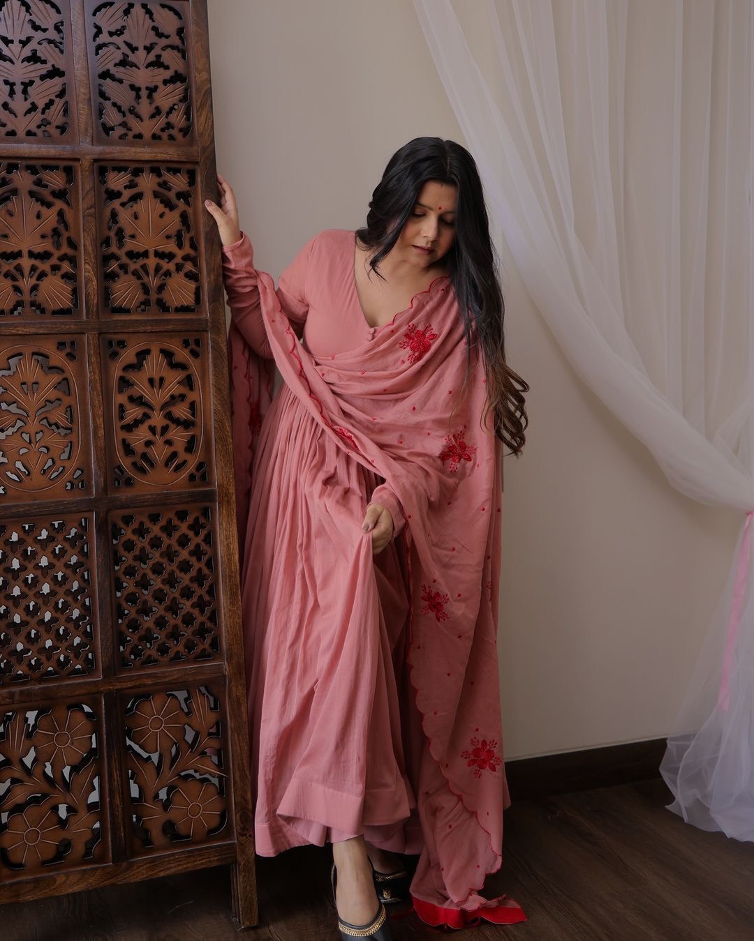 The Anarkali is so elegant and flowy! I loved the 5-meter flare, it gives such a royal look. The butter silk pants are also super comfortable.