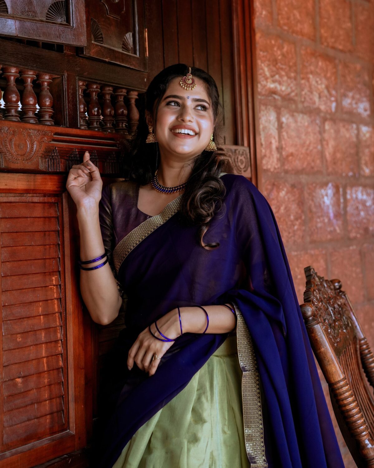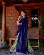 The lehenga is absolutely stunning! The midnight blue and pistachio combination is so unique. Perfect for weddings or festive events.