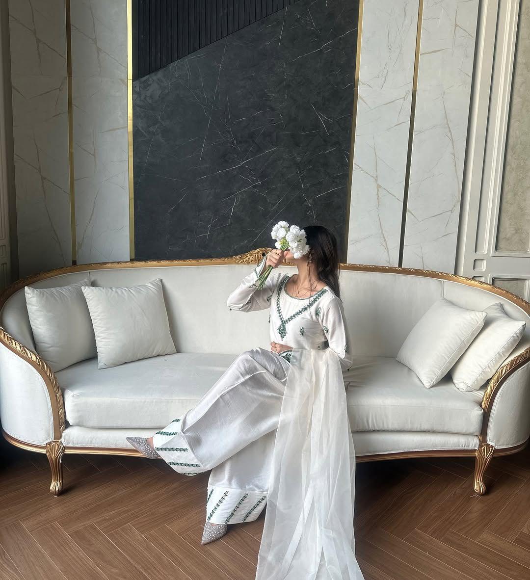 - Sharara: Pure Heavy Faux Georgette with Heavy Embroidery Sequence Work (Full Stitched)