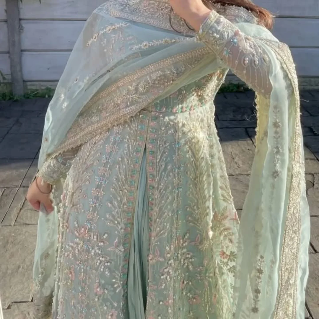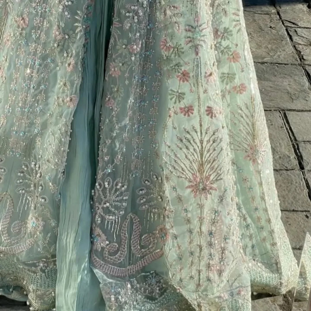 • Fabric: Pure Chinnon Silk with Heavy Embroidery and Sequins Work