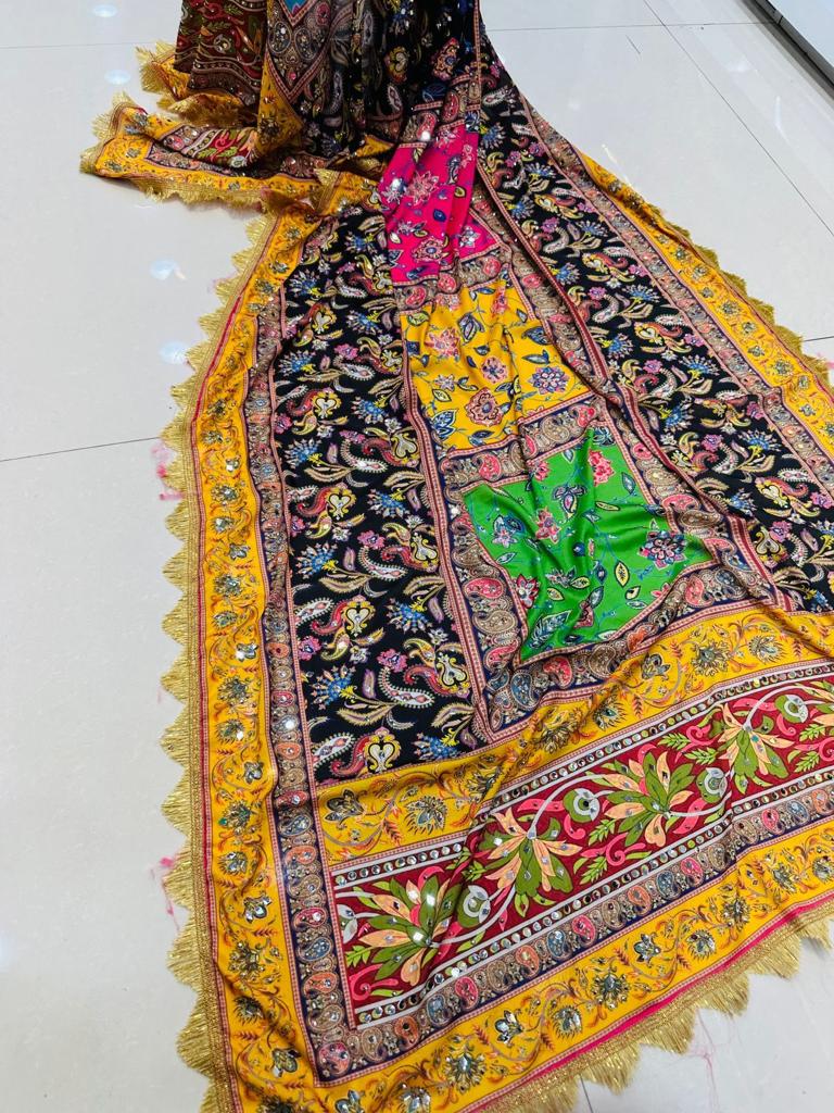 The Dazzling Mirror Embroidered Dupatta is a beautiful accessory that will add a touch of glamour to any traditional or modern outfit. The delicate embroidery on this dupatta is complemented by the intricate mirror work, which creates a dazzling effect that will catch everyone’s attention.