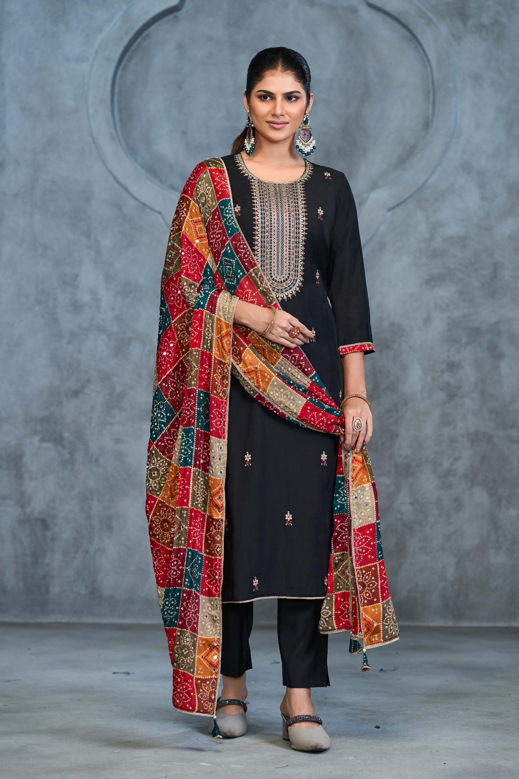 Regal Black Kurta Ensemble with Bandhani Elegance