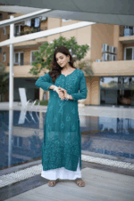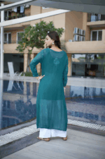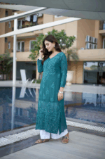 5 reviews for Teal Regal Ensemble: Straight Kurti & Palazzo Set