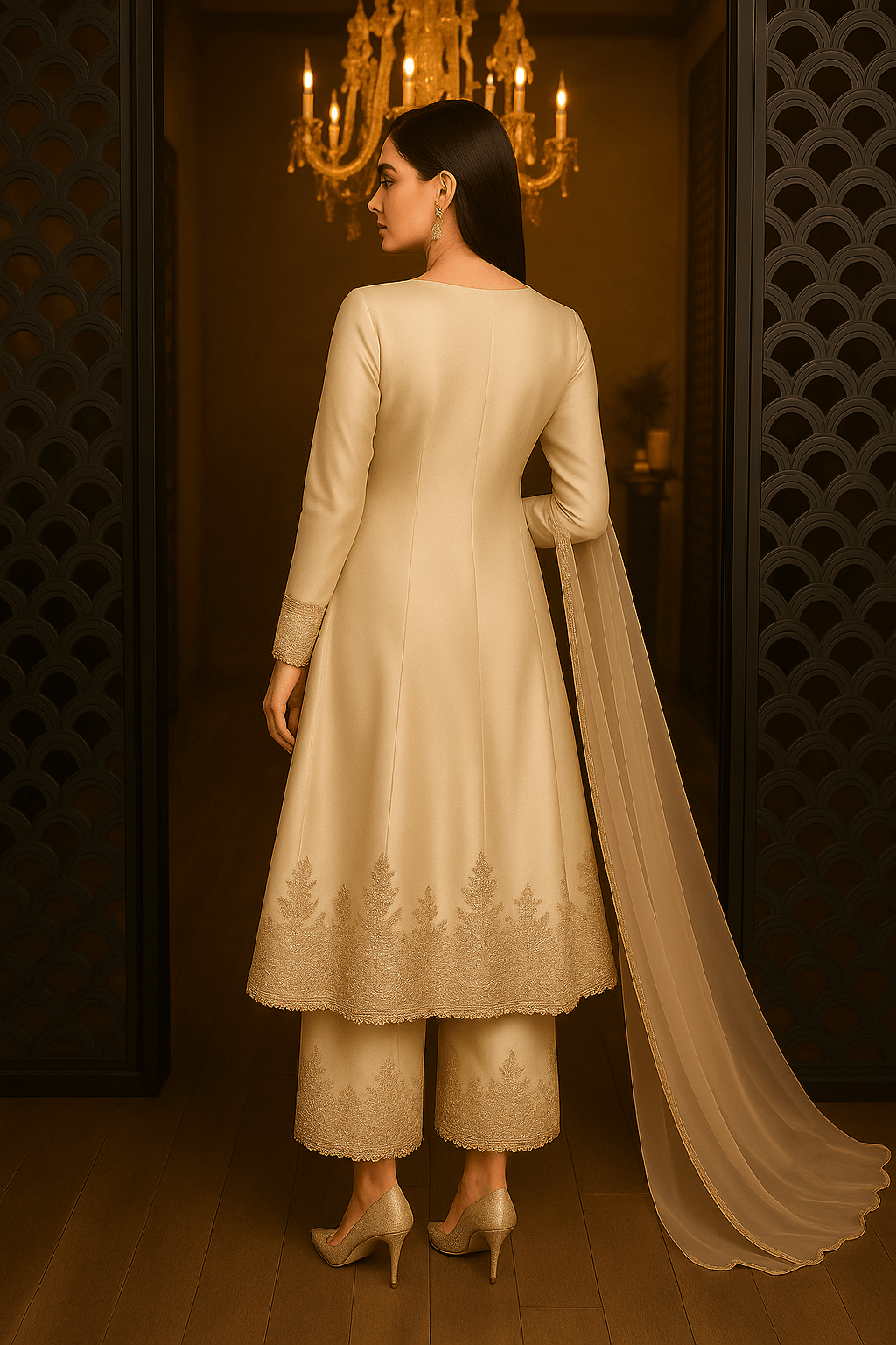 Yeh outfit bilkul dreamy hai! Kapda high-quality hai aur embroidery kaafi classy lagti hai. Functions ke liye perfect!