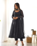 Yeh Anarkali set bohot hi sundar hai! Black color aur print dono hi classy lagte hain.