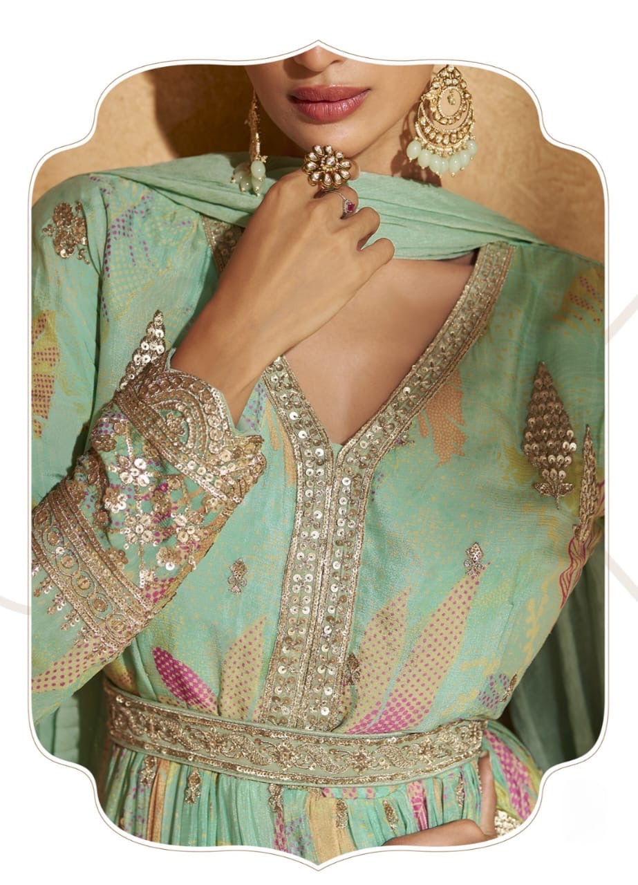 The Regal Bloom Luxe Anarkali is absolutely stunning! The Chinon silk fabric feels so premium and the intricate detailing is breathtaking. Perfect for festive occasions.