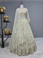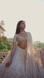 Embrace regal elegance with the Golden Ivory Radiance Lehenga, where shimmering gold details meet a soft ivory canvas, creating a look that’s both timeless and luminous.