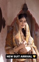 Dupatta ka digital print aur mirror work next level hai! Party wear ke liye perfect choice hai.