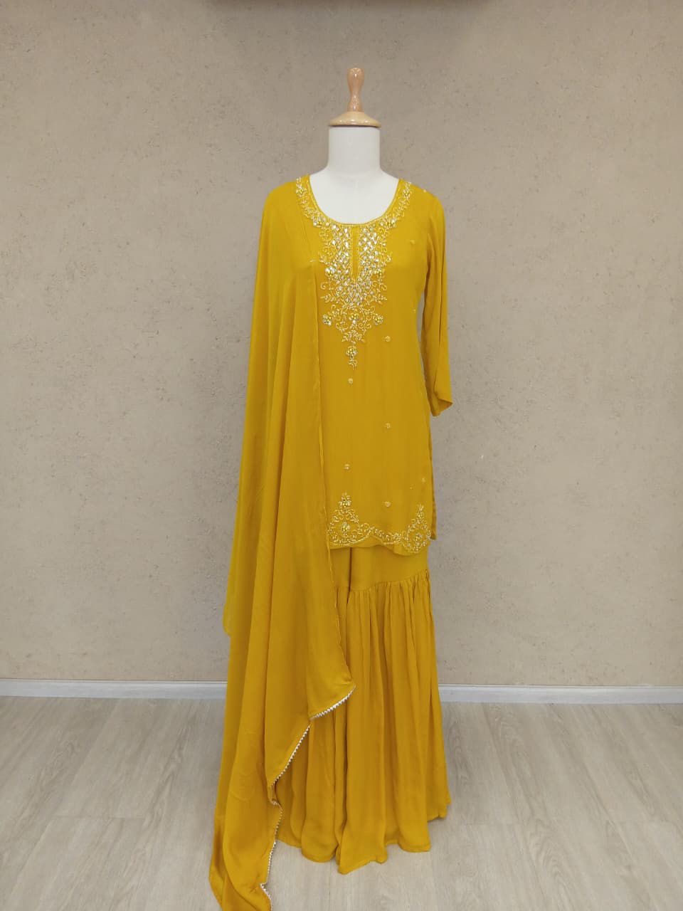Regal Yellow Silk Ensemble with Embellished Elegance