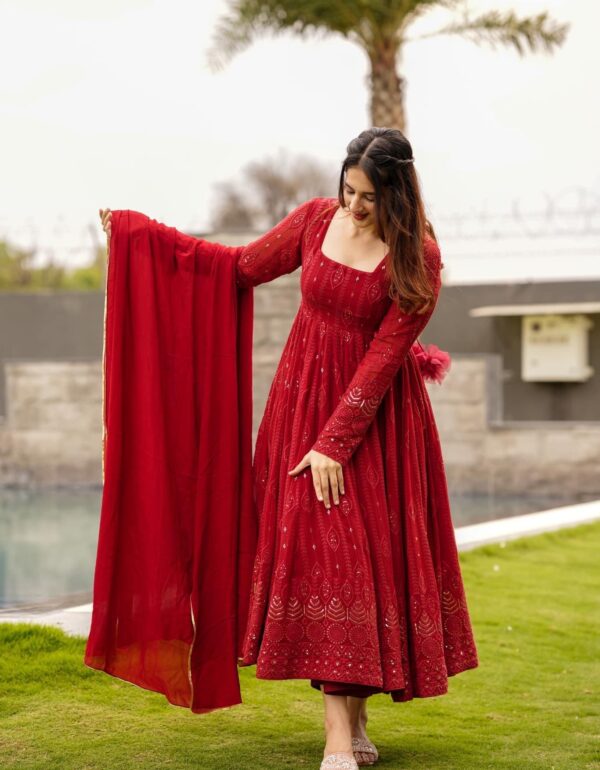 The fit is perfect, and the georgette fabric feels really light and comfortable. Dupatta work is gorgeous too!