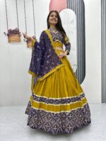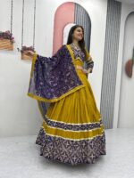 Yeh lehenga bilkul royal lagta hai! Mustard aur bandhani ka combo ekdum unique hai.