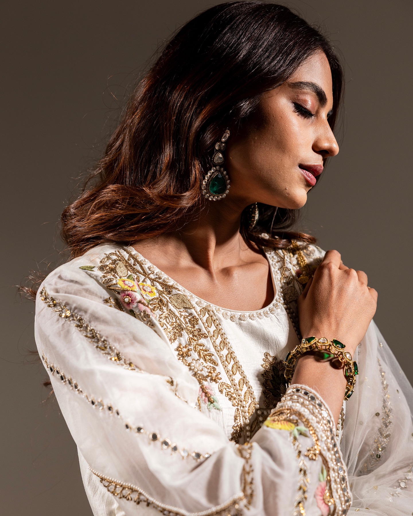 - Hand embroidered with sequence, beads and applique of handmade hand embroidered delicate flowers