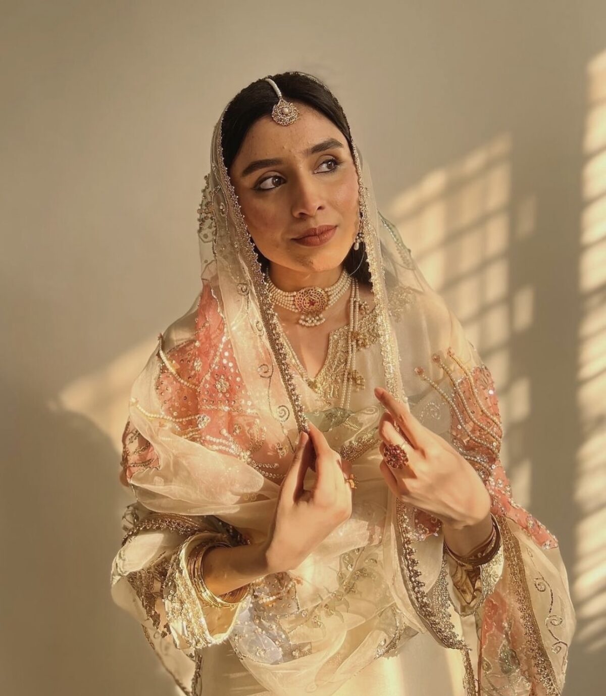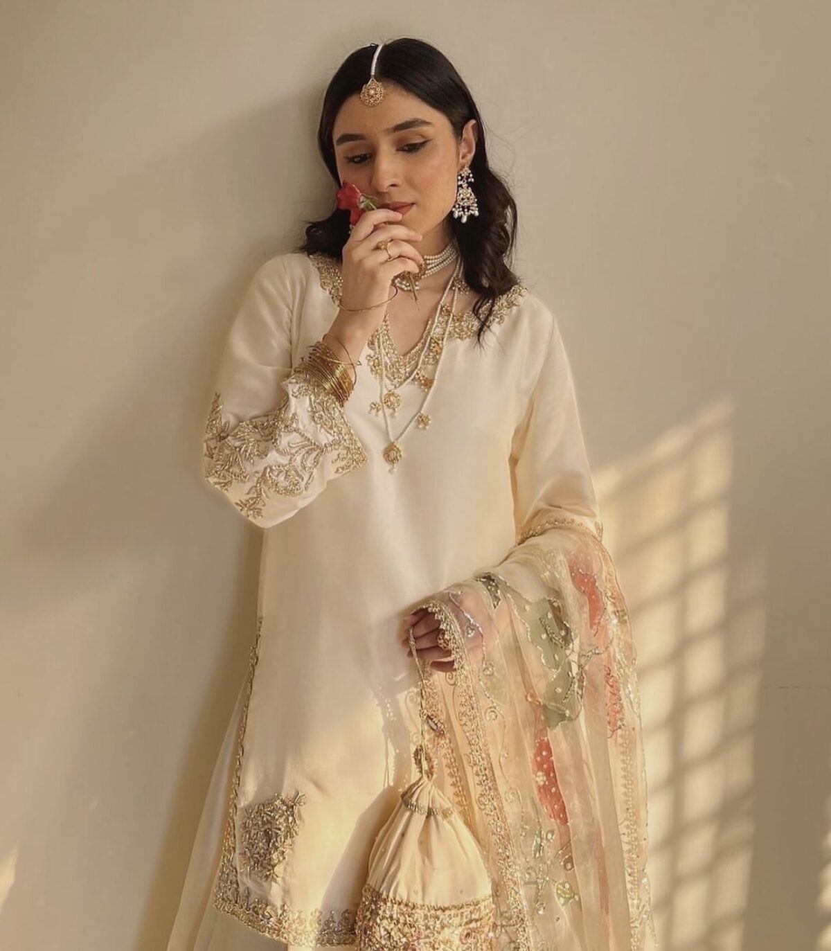 5 reviews for Regal Ivory Embroidered Gharara Set in Luxe Georgette