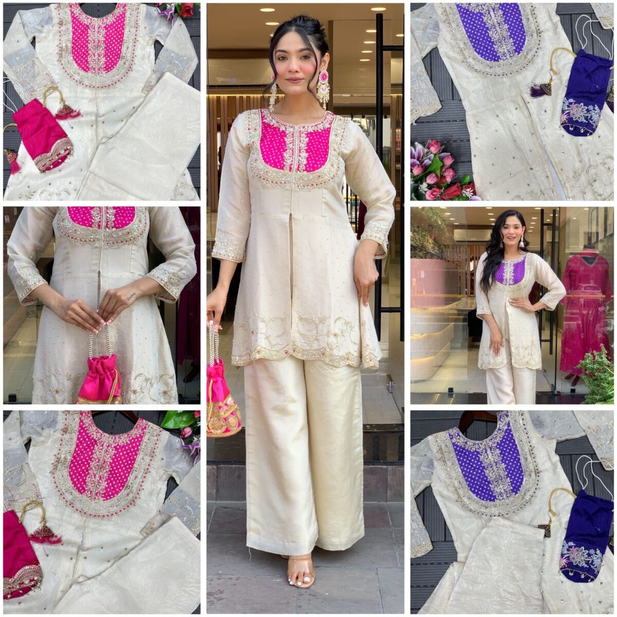 - Sharara: Pure Heavy Faux Georgette with Heavy Embroidery Sequence Work (Full Stitched)