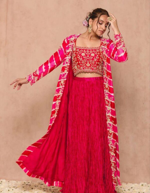 Beautiful lehenga with a modern twist. The voluminous skirt is so graceful, and the cap-sleeved kurti fits perfectly. Highly recommend!