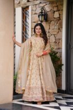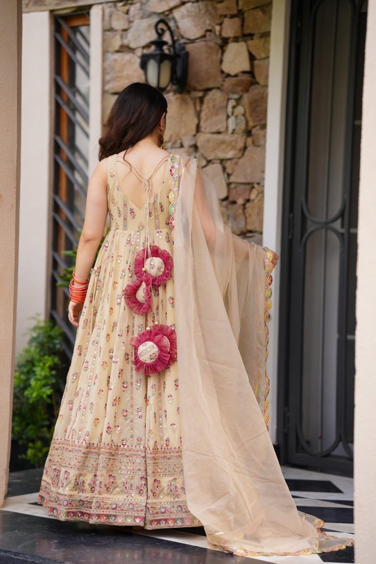 The gown is absolutely stunning! The fabric feels premium and the embroidery is so detailed. Perfect for weddings or special occasions.