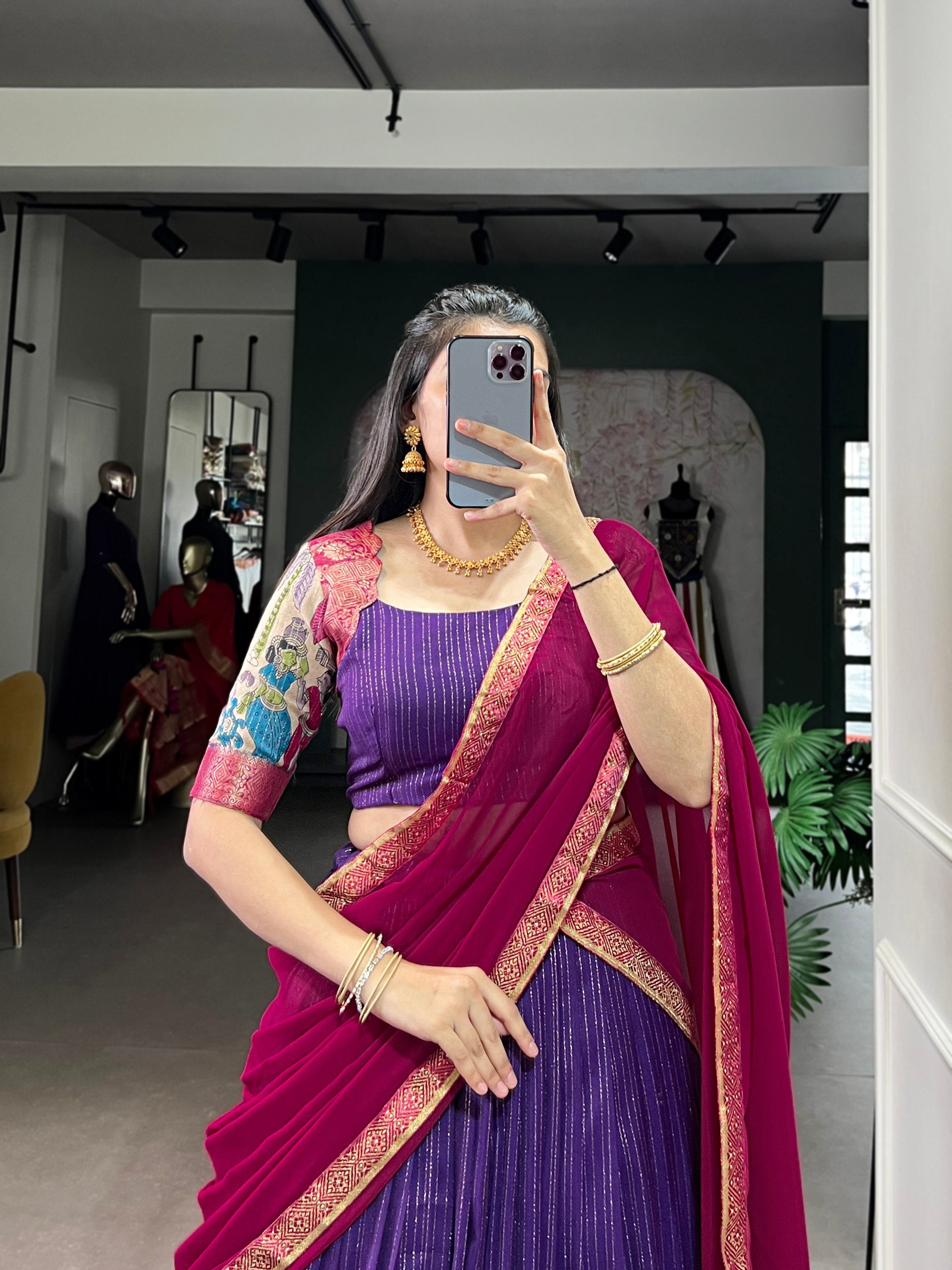 Lehenga Fabric : Poly Chanderi (Zari Stripe)