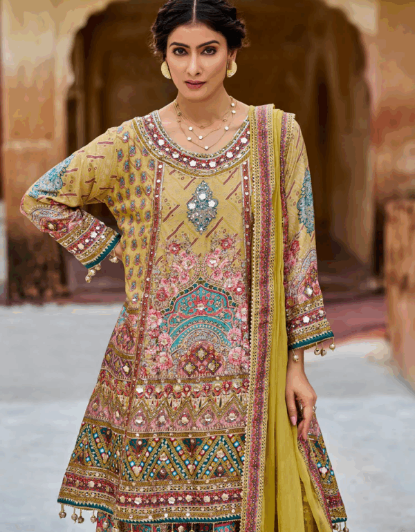 • Fabric: Pure Chinnon Silk with Heavy Embroidery and Sequins Work