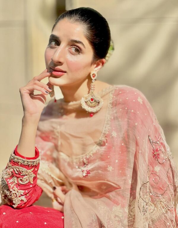 Magenta color aur embroidery dono zabardast hai. Salwar ka style alag lagta hai, aur dupatta bhi kaafi heavy hai.