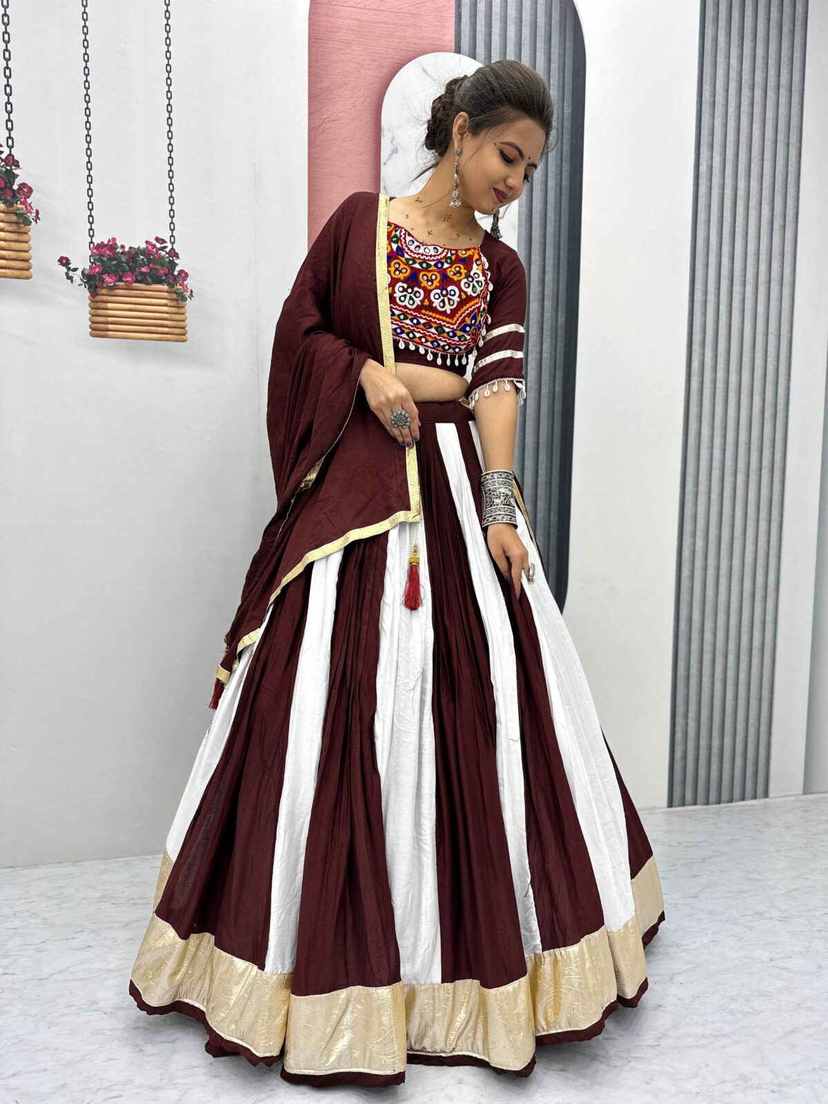 The lehenga is absolutely stunning! The mirror work is intricate and gives a very festive vibe. Perfect for Navratri celebrations.
