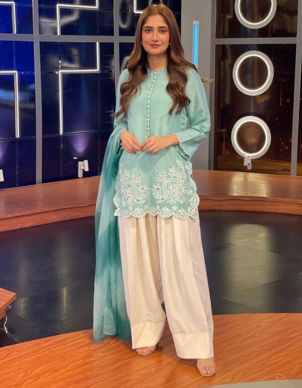 - Work: Adorned with delicate 5mm sequin embroidery work on the body and sleeves for a subtle, elegant sparkle.