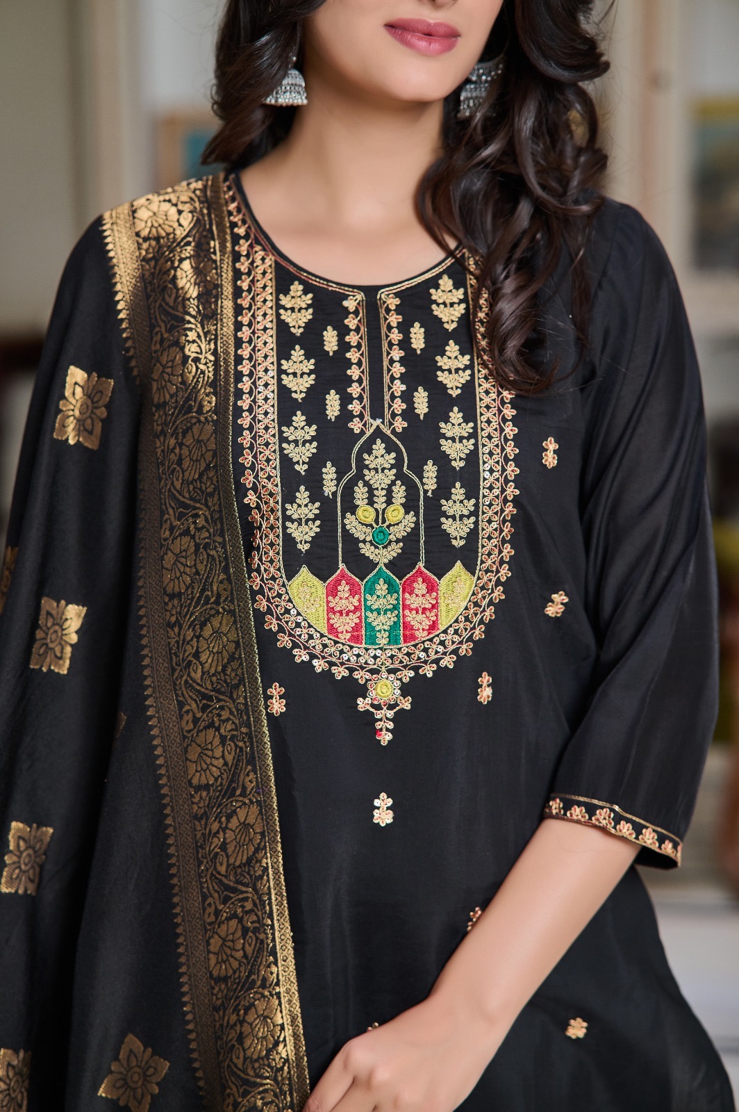 Regal Faux Georgette Ensemble With Sparkling Sequin Detailing