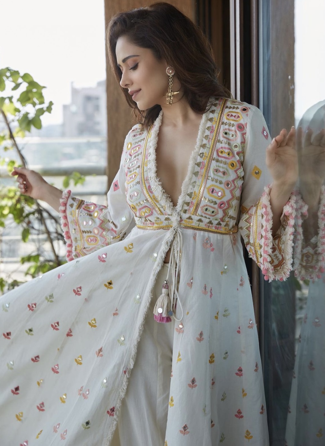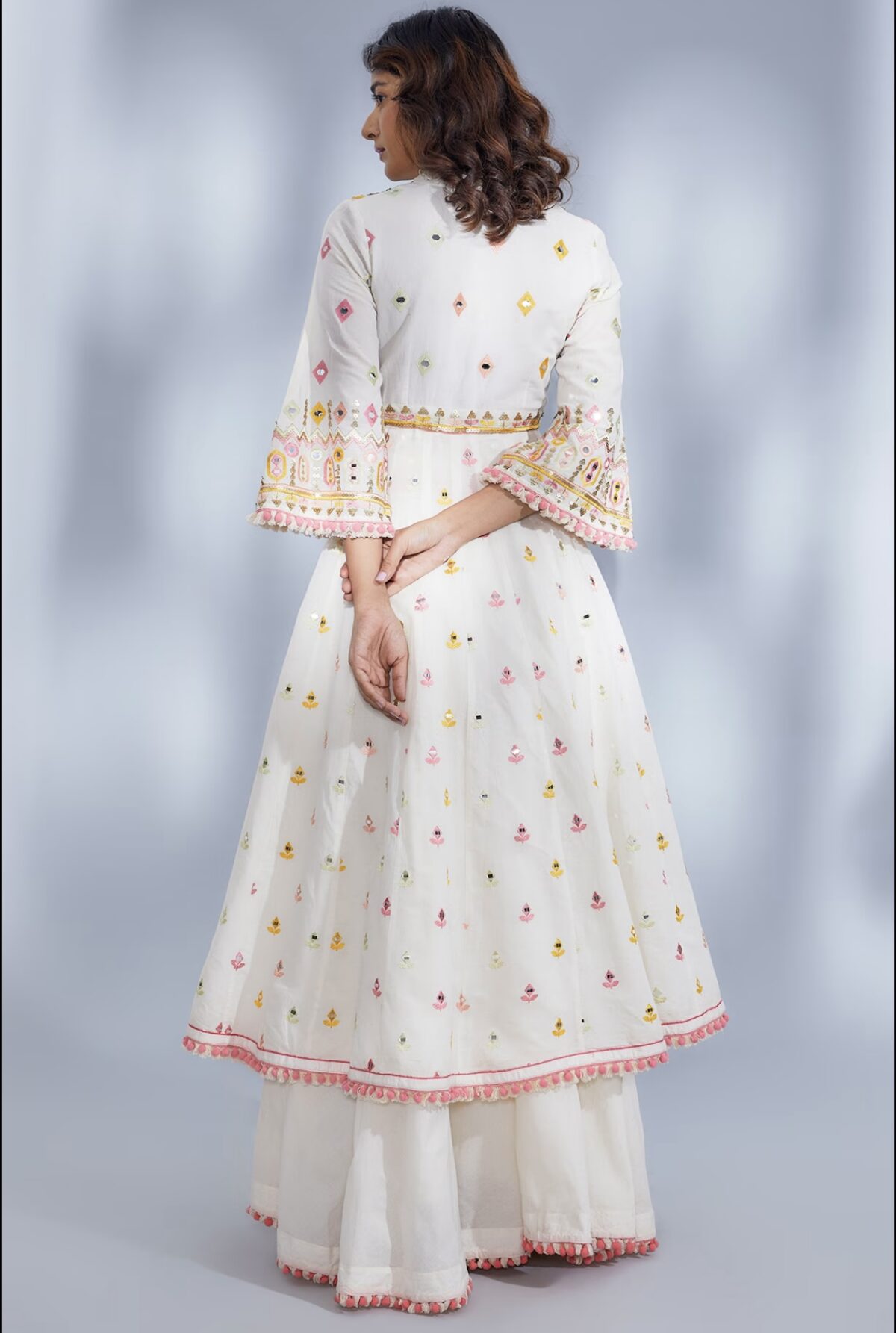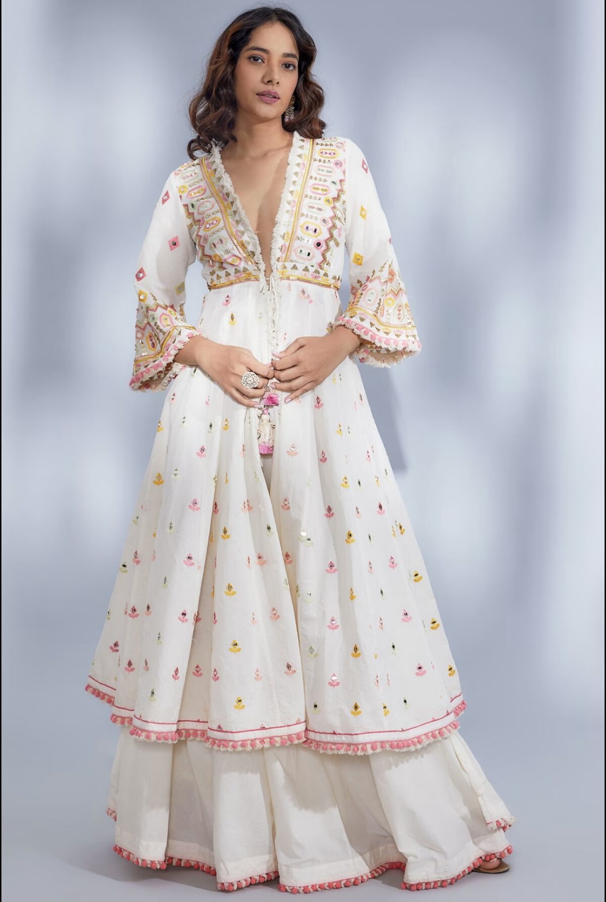 The Ivory Luxe Ensemble is absolutely stunning! The embroidery and mirror work are so intricate, and the fabric feels premium. Perfect for festive occasions!