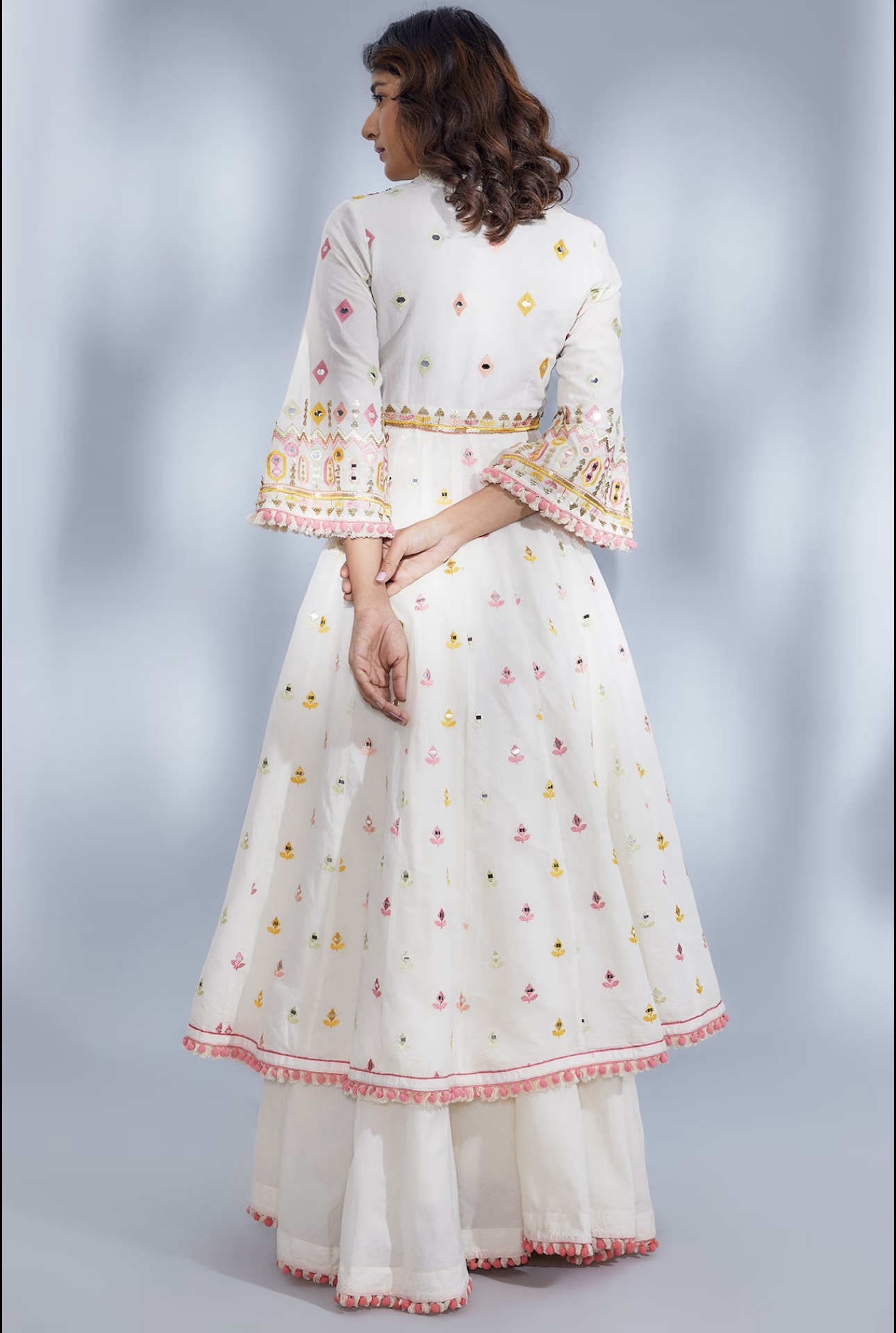 Yeh dress bohot hi sundar hai! Embroidery aur mirror work bilkul classy lagta hai, aur fabric bhi kaafi soft hai.