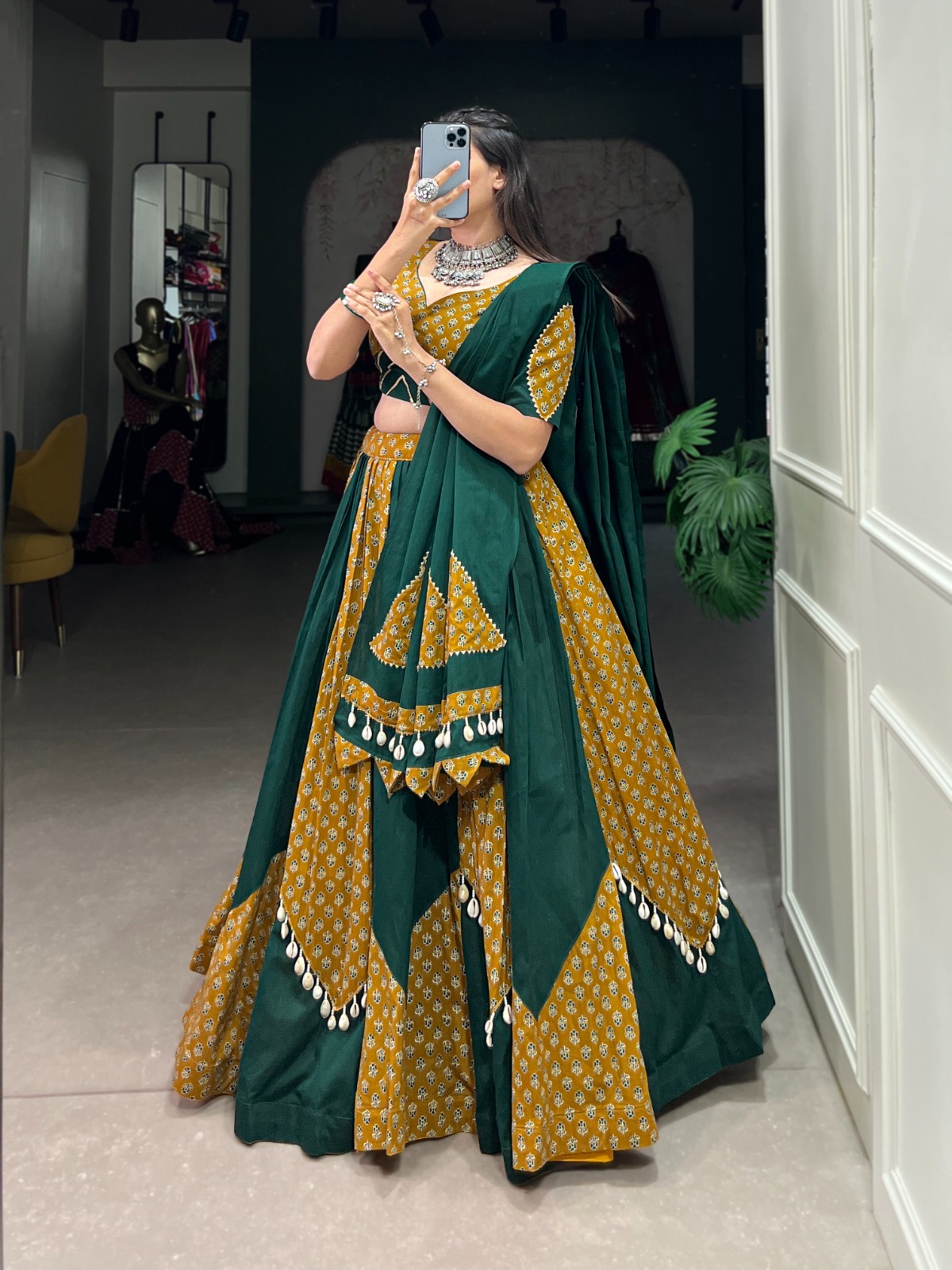 Navratri Special Emerald Gold Geometric Lehenga Choli