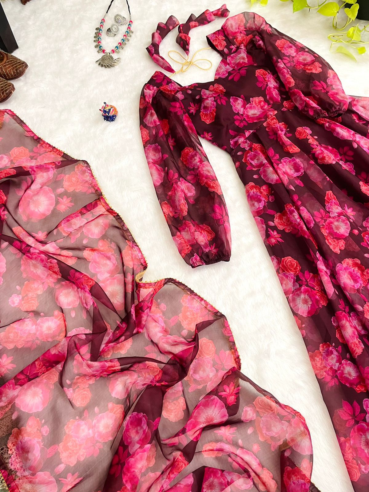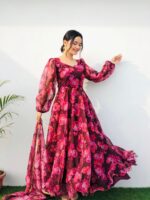 Whether it’s a wedding, engagement, or any other special event, this gown is sure to make you feel like a true queen. So, make a statement at your next event with our New Party Wear Look Organza Taby Silk Gown With Dupatta.