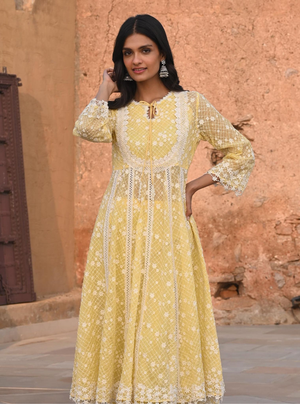 • Design: Delicate embroidery and a soft pastel palette enhance its ethereal appeal, making it a standout choice for your wardrobe.