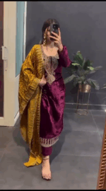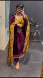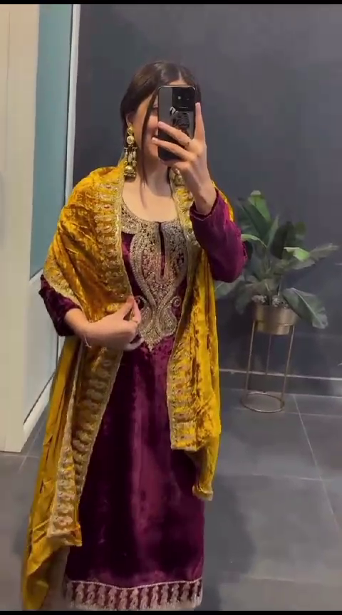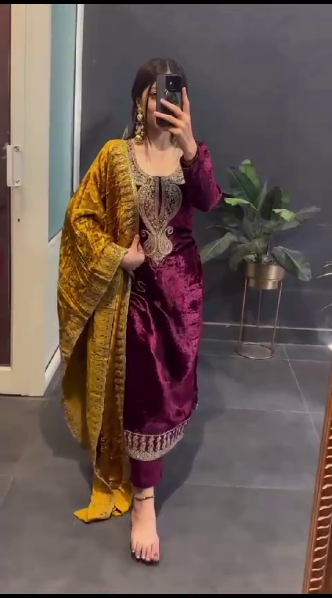 Yeh outfit toh next level hai! Velvet ka texture itna soft aur embroidery bilkul perfect. Functions ke liye best choice hai.