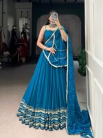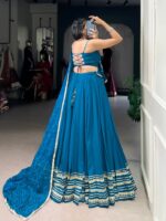 The lehenga is absolutely stunning! The royal blue color with the golden border looks so elegant. Perfect for weddings.