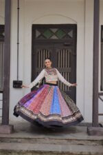 Beautiful lehenga with vibrant colors! The mirror work is stunning and perfect for Navratri celebrations.