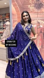 Immerse yourself in regal elegance with the Royal Blue Embroidered Lehenga Choli with Dupatta. This exquisite ensemble is perfect for making a grand statement at any festive or formal occasion. This stunning lehenga choli set is designed to enhance your beauty and poise, with its luxurious fabric and meticulous craftsmanship. The rich royal blue color, combined with intricate silver embroidery, ensures you stand out with grace and sophistication. Perfect for weddings, festivals, and special occasions, this ensemble will make you feel like royalty.