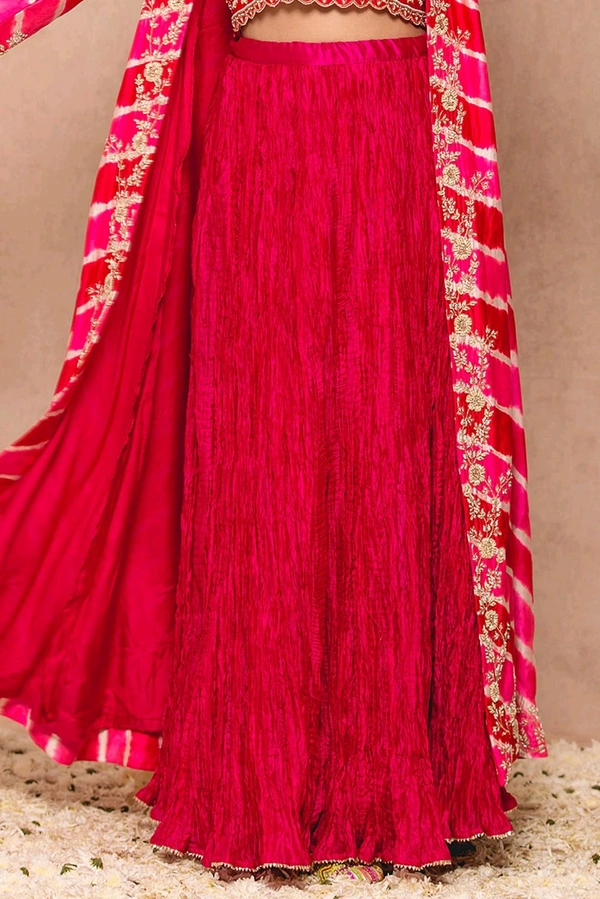 Lehenga ka flair bohot hi acha hai, aur embroidery classy lag rahi hai. Shrug ka design unique hai, sabko pasand aaya ghar mein.