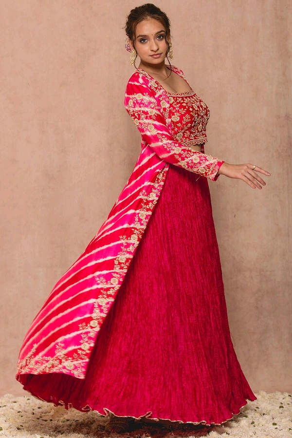 Absolutely stunning outfit! The embroidery on the shrug is so detailed, and the lehenga’s flair is perfect for twirling. Worth every penny.