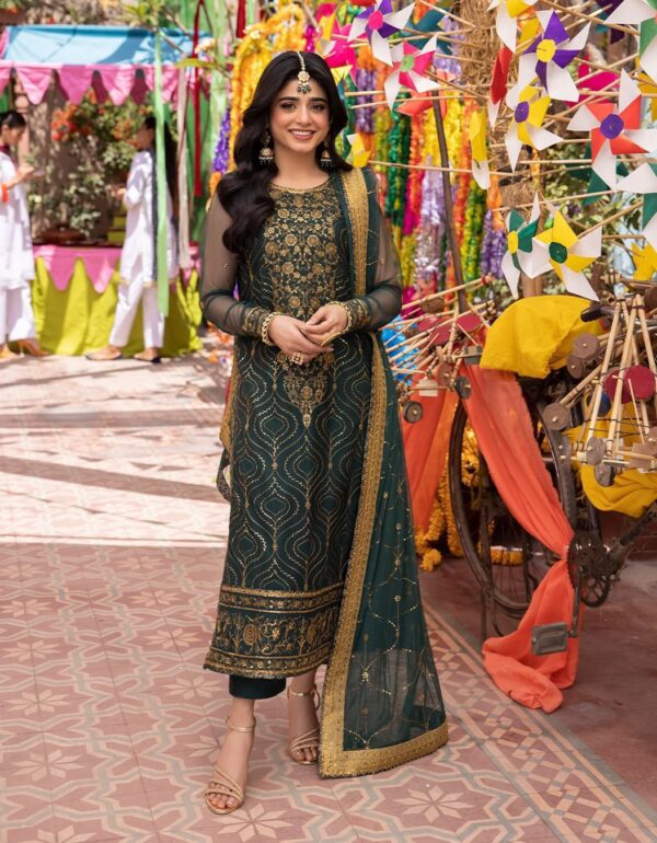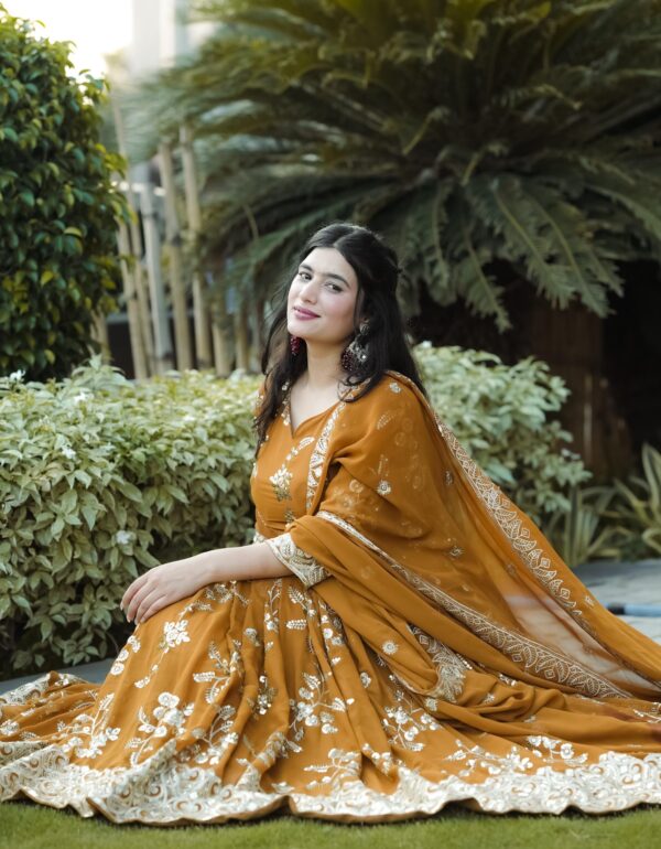• Fabric: Heavy faux georgette with 5mm sequins and embroidery work (fully sleeved)