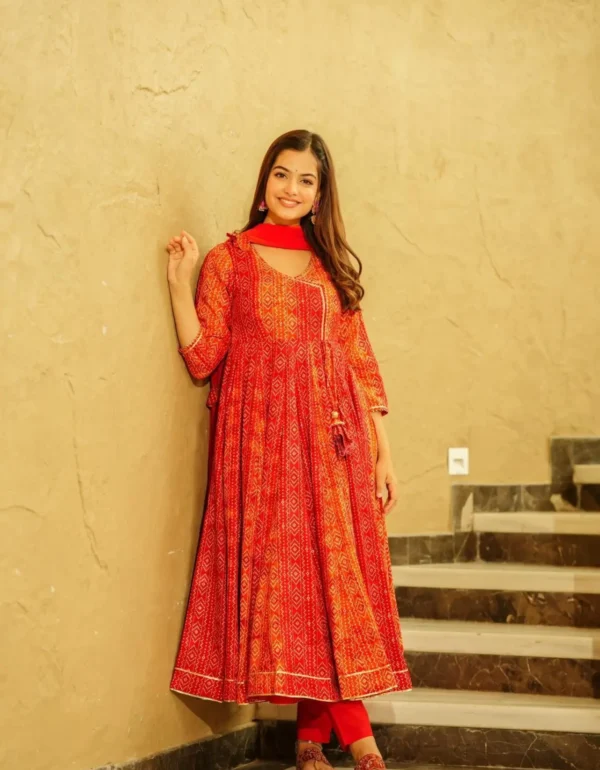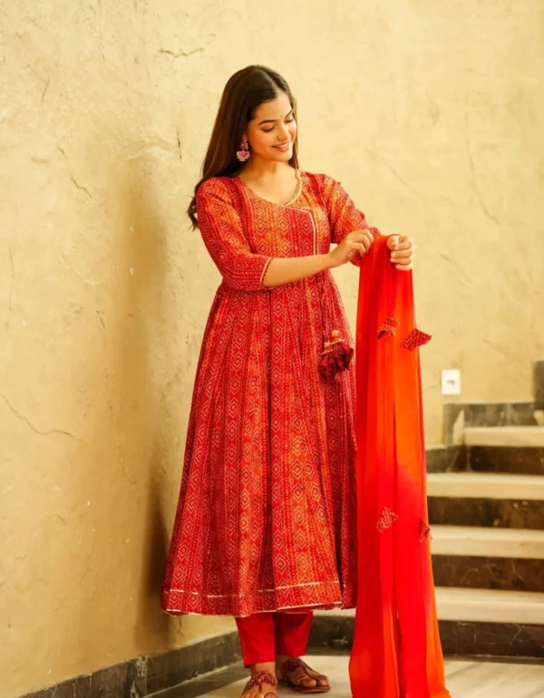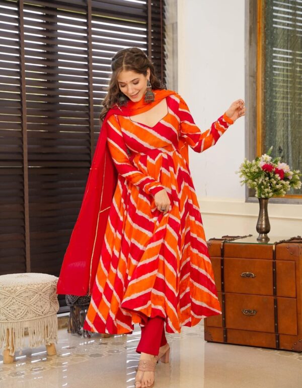 Vibrant Sunset Leheria Striped Anarkali Suit
