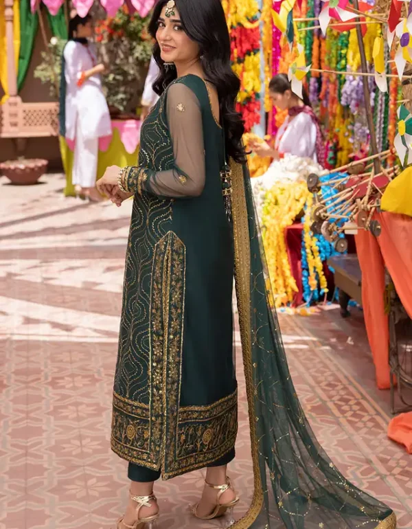 The quality of the fabric is amazing! The embroidery is so intricate and makes the outfit look really luxurious. Perfect for festive occasions.