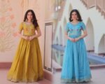 Yaar, gown bahut hi sundar hai! Mustard aur sky blue ka combo bilkul royal lagta hai. Main toh totally khush hoon isse leke.