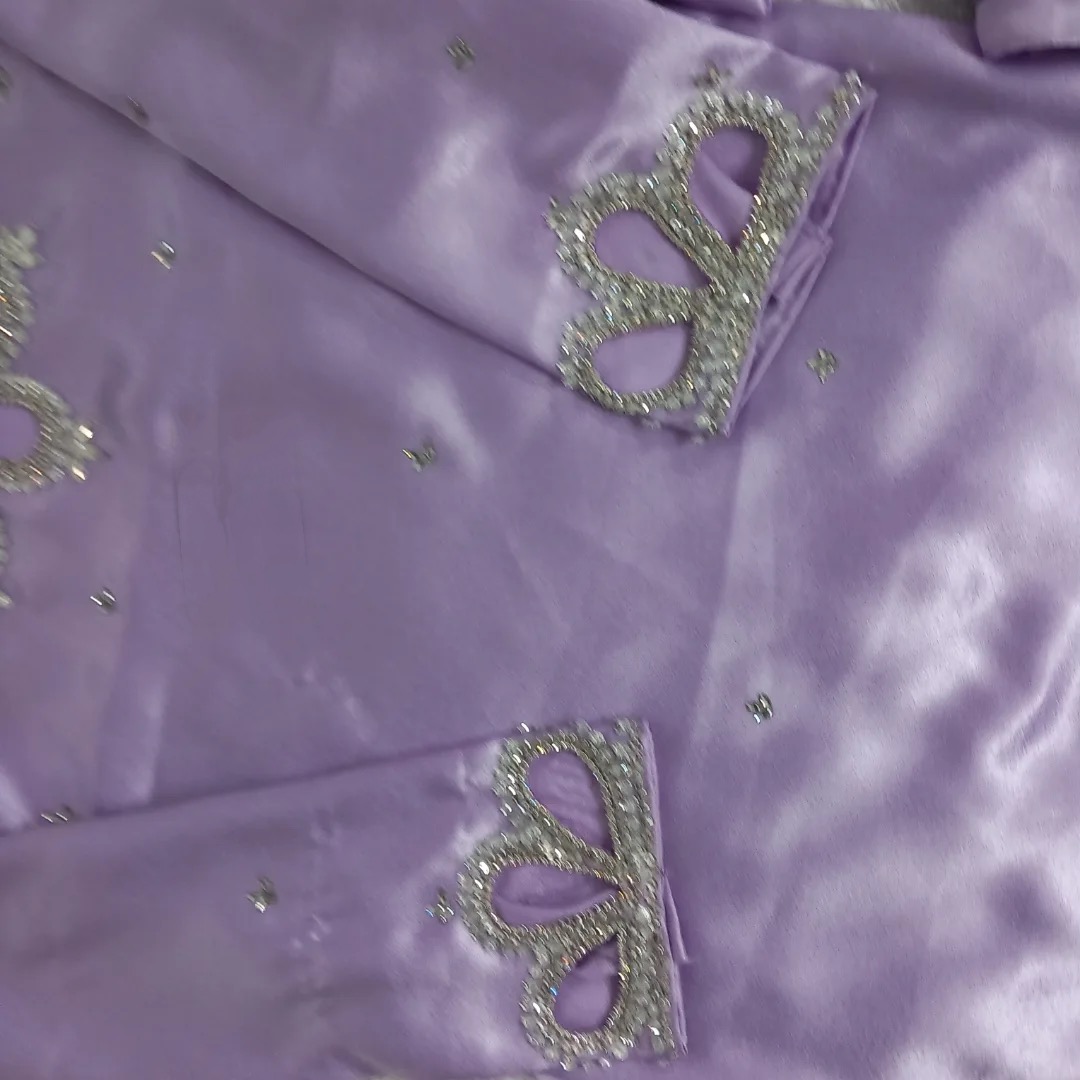 Absolutely stunning ensemble! The butter silk fabric feels so luxurious, and the crystal embellishments add the perfect amount of sparkle. Worth every penny!