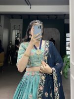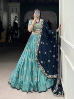 The lehenga is absolutely stunning! The teal color is so vibrant, and the fabric feels premium. Perfect for weddings!