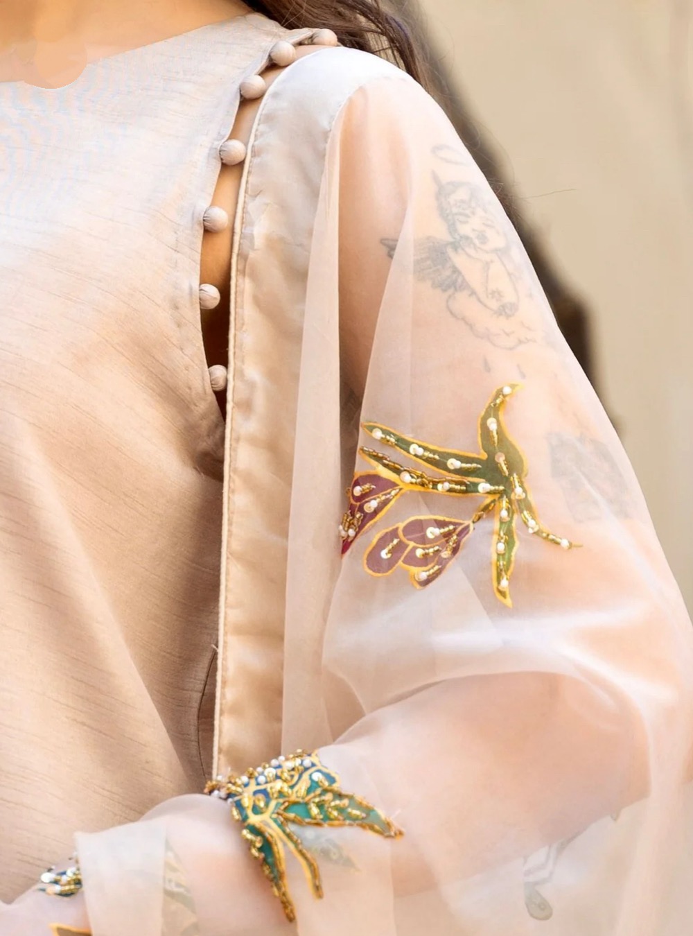 Regal Peach Luxe Georgette Suit With Sequin Detail