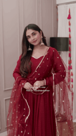The Regal Scarlet Luxe Anarkali is absolutely stunning! The rayon fabric feels so soft, and the georgette dupatta adds a touch of elegance. Perfect for festive occasions.