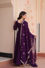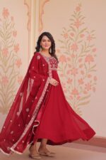 The gown is absolutely stunning! The embroidery work is detailed and gives a royal vibe. Perfect for festive occasions.