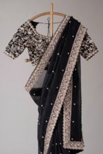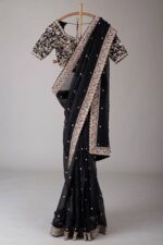 Yeh saree bohot hi classy lagti hai! Black color aur shimmer ka combination ekdum perfect hai.