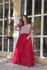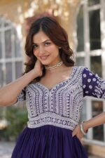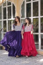 PRODUCT DETAILS: Gown:Fabric – Vichitra SilkWork – Embroidery Zari-Codding Sequins work And Dori LatkanLining -Cotton (Full Inner Top To Bottom)Sleeve –